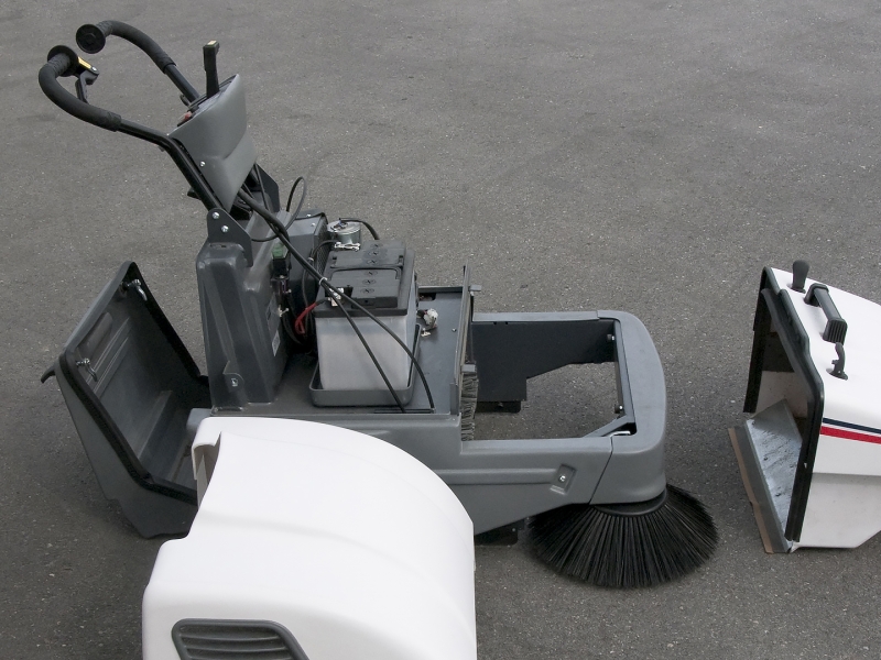 Il solido manico permette all'operatore di mantenere una posizione comoda, di controllare facilmente tutte le operazioni di pulizia e di avere in ogni momento una vista completa dell'area davanti alla spazzatrice.