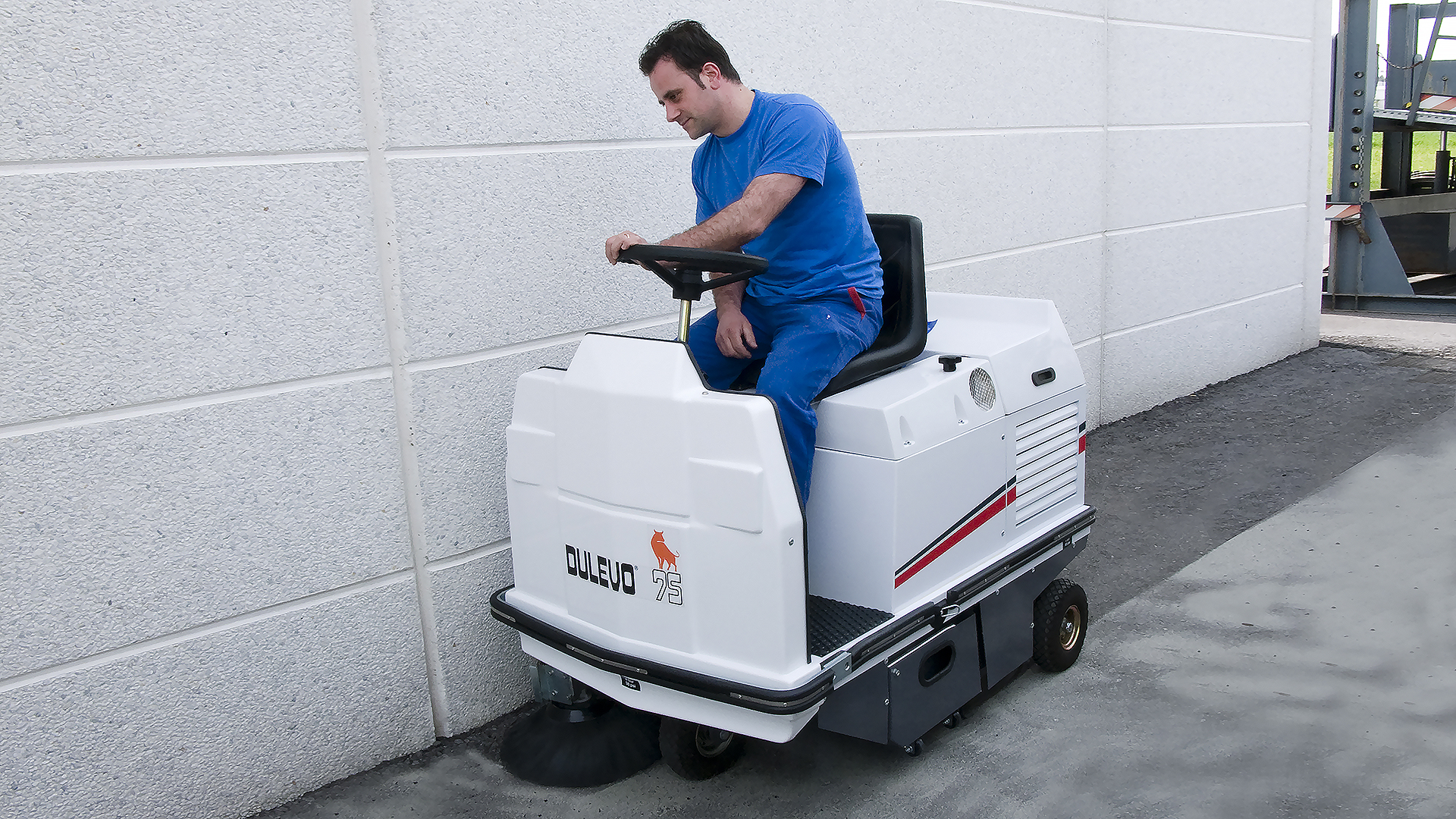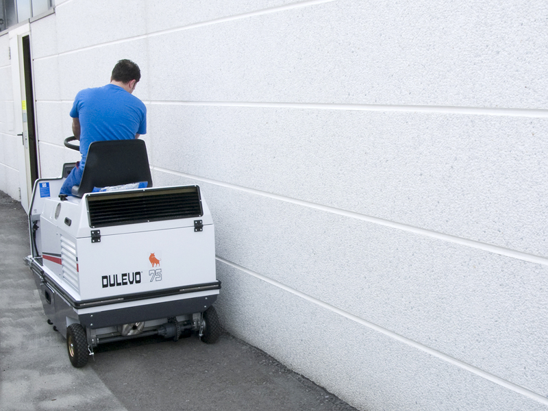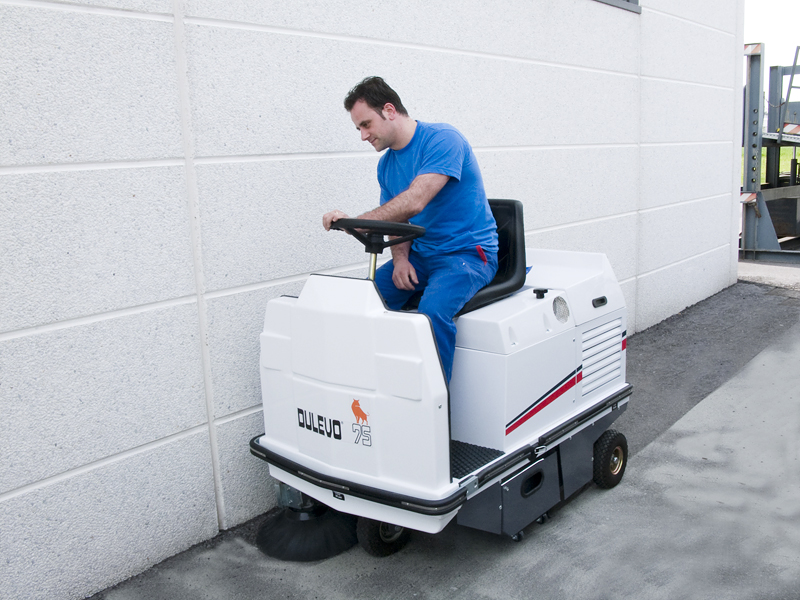 Questa compatta spazzatrice industriale è l'unica macchina che può affrontare agilmente lavori di intenso spazzamento anche in aree molto strette. La spazzatrice uomo a bordo Dulevo 75 è stata concepita per lavorare in ambienti molto polverosi.