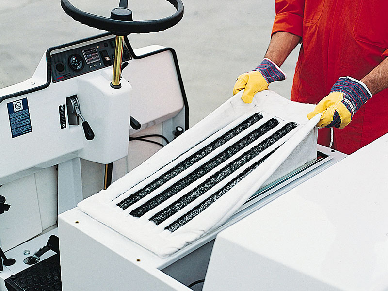 Oltre al filtro di alta qualità che monta di serie, la spazzatrice uomo a bordo Dulevo 75 può essere equipaggiata con un filtro da prestazioni ancora più elevate.