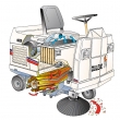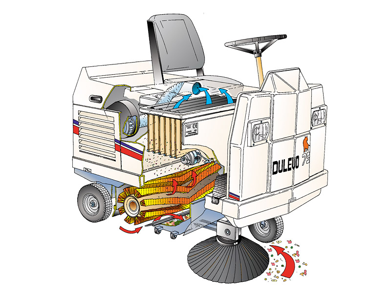 La spazzatrice industriale Dulevo 75 ha tutte le caratteristiche delle migliori macchine industriali: ampio contenitore, grande potenza, eccezionali prestazioni di spazzamento e un impianto di aspirazione veramente performante.