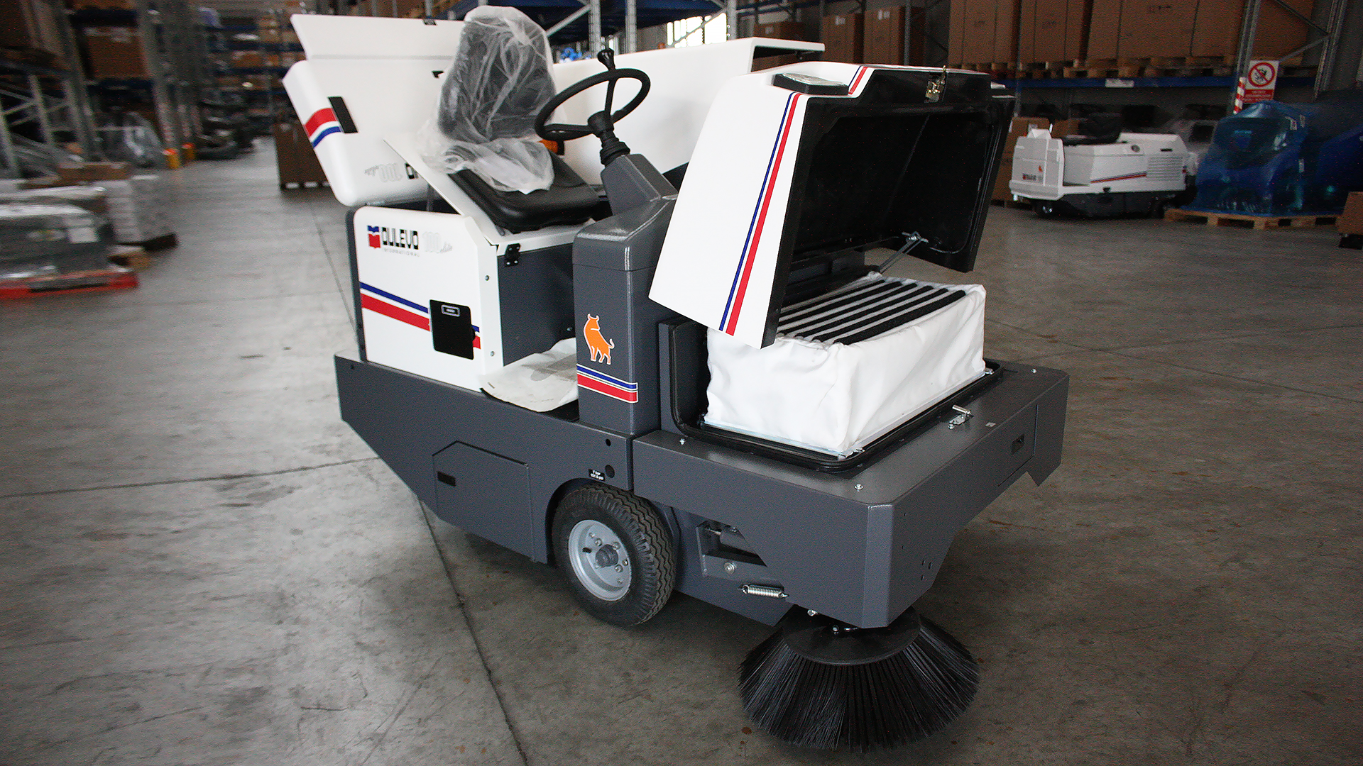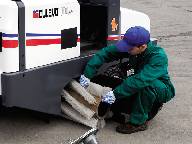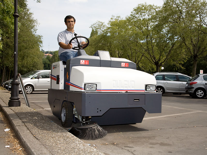 La spazzatrice uomo a bordo Dulevo 100 è progettata per lavorare in qualsiasi ambiente polveroso.