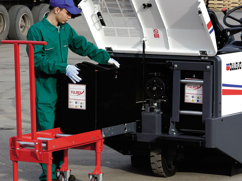 In grado di raccogliere indifferentemente sia la polvere più fine sia la ghiaia, la Dulevo 100 è la macchina ideale per le applicazioni di industria pesante, ambienti pubblici ed aree di carico/scarico come magazzini, banchine di carico, parcheggi ecc.