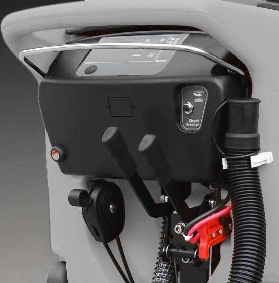 La macchina viene equipaggiata di serie del dispositivo di aggancio e sgancio automatico della spazzola, tramite un semplice pulsante sul cruscotto.È inoltre indicata in ambienti liberi da ingombri e dove la presenza del cavo elettrico di alimentazione non costituisce un ostacolo allo svolgimento del lavoro.